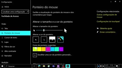 Personalize o tamanho e a cor do mouse para aumentar a visibilidade na navegação.