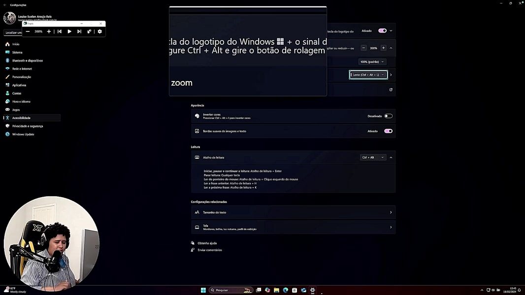 Aula 04 - Recursos de lupa e "tornar tudo maior" no Windows 11 Como utilizar os recursos de lupa e tornar tudo maior na tela para melhorar a visibilidade no sistema.