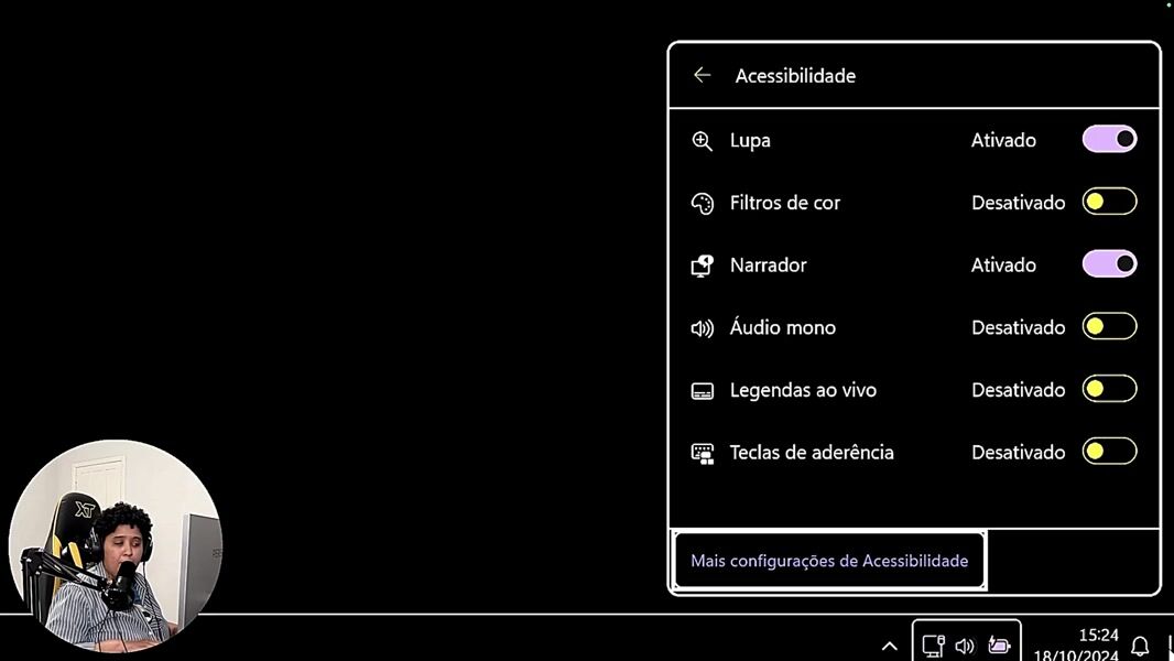 Aula 03 - Menu de acessibilidade do Windows 11 Explorando o novo menu de acessibilidade e suas funções rápidas.