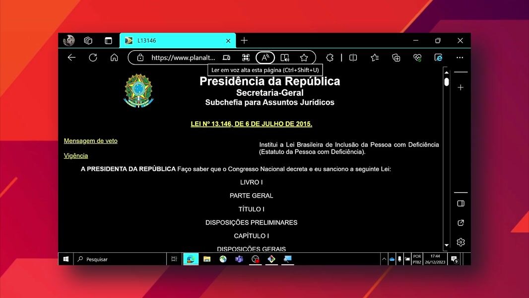 Aula 06 - Recursos de acessibilidade do Microsoft Edge Ferramentas de leitura e navegação acessível no navegador padrão.