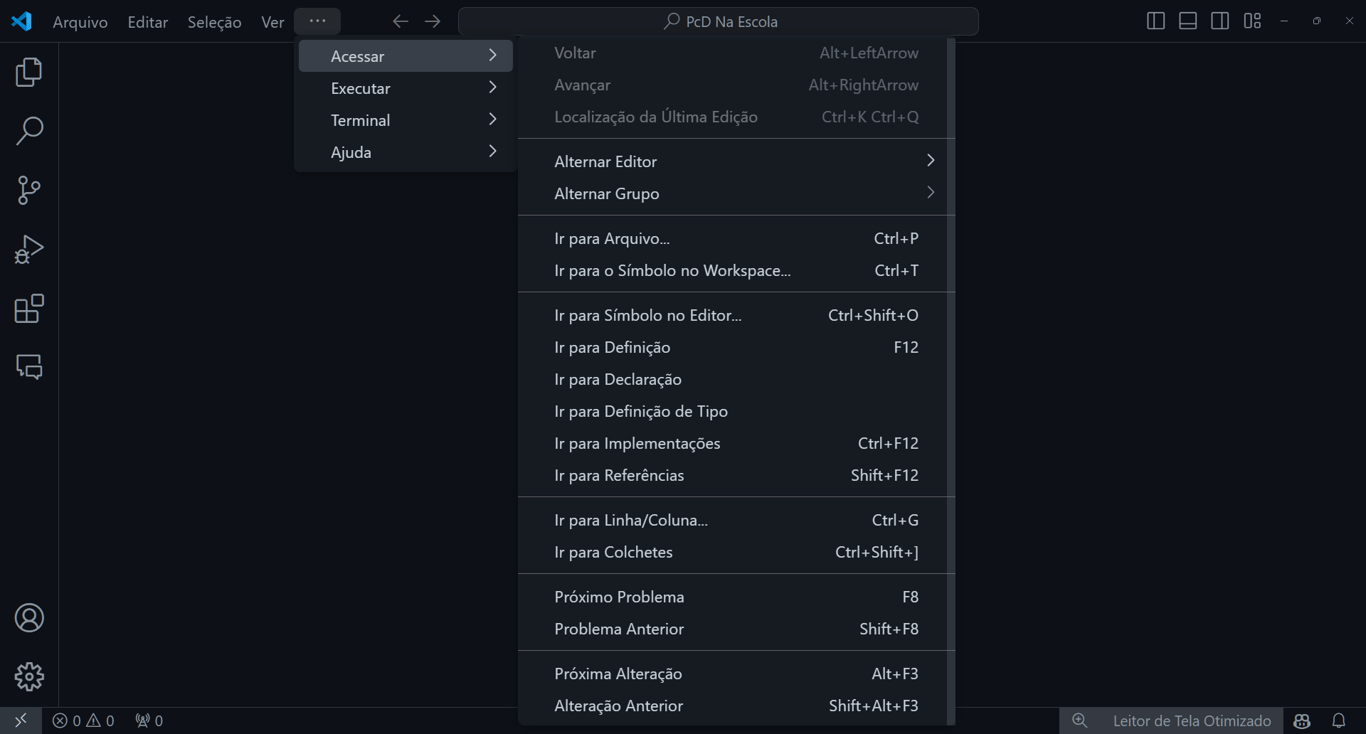 Futuramente pretendemos criar artigos específicos para o uso do VS Code com VoiceOver no macOS e Orca no Linux, mas enquanto isso, a dica é observar as instruções deste artigo para o NVDA e buscar os comandos equivalentes no seu leitor de telas e sistema operacional.